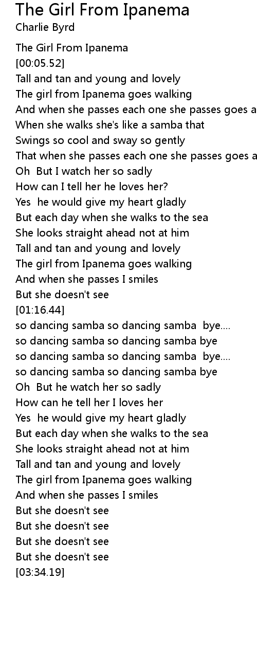 The Girl From Ipanema Lyrics Follow Lyrics